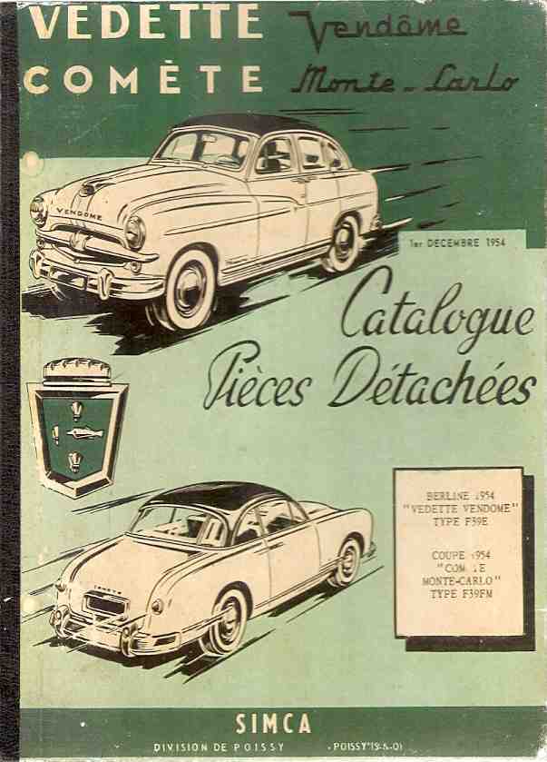 Type: Berline 1954, Vedette Vendome Type F39E, Coupe 1954 Comete  Monte Carlo Type F39FM.